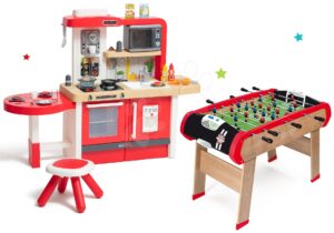 Set kuchynka rastúca s tečúcou vodou a mikrovlnkou Tefal Evolutive Smoby a drevený futbalový stôl BBF Champions