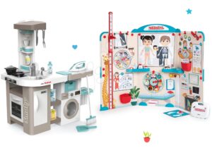 Set kuchynka elektronická s práčkou a žehliacou doskou Tefal Cleaning Kitchen 360° Smoby a lekárska ordinácia s anatómiou ľudského tela