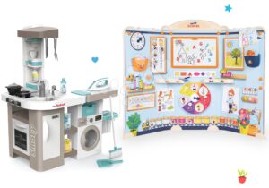 Set kuchynka elektronická s práčkou a žehliacou doskou Tefal Cleaning Kitchen 360° Smoby a škola pre škôlkárov obojstranná