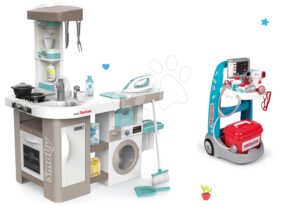 Set kuchynka elektronická s práčkou a žehliacou doskou Tefal Cleaning Kitchen 360° Smoby a lekársky vozík elektronický so zvukom a svetlom